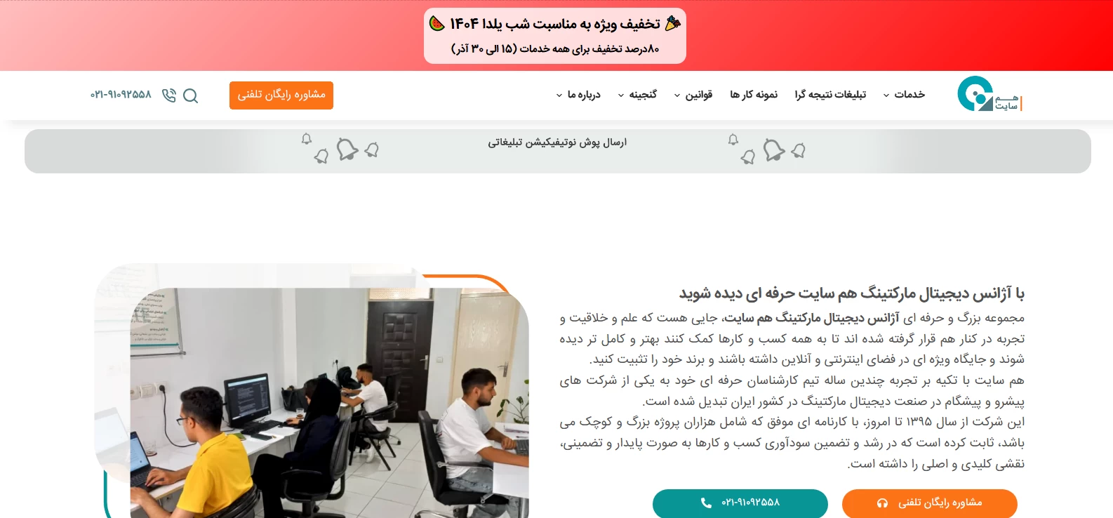 هدف اصلی شرکت هم سایت در حوزه دیجیتال مارکتینگ، پایین آوردن هزینه های بازاریابی و طراحی سایت است. این مجموعه که به عنوان یک شرکت طراحی سایت فروشگاه اینترنتی فعالیت می کند، سایت های خود را با وردپرس اجرا می کند. همچنین امکانات کاربردی و رابط کاربری خوبی را در اختیار مشتریان خود قرار می دهد. قابلیت واکنشگرایی سایت های طراحی شده توسط این مجموعه، جزو ویژگی های اصلی است که مشتریان به آن توجه می کنند. سایر فعالیت های این مجموعه نیز عبارتند از: