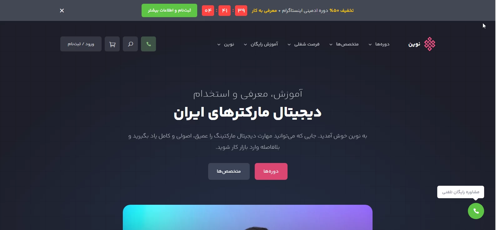 در شرکت نوین، علاوه بر ارائه خدمات طراحی، دوره های طراحی سایت با پشتیبانی 24 ساعته نیز برگزار می شود. این مجموعه در حوزه دیجیتال مارکتینگ، استراتژی سئو و محتوا، تبلیغات گوگل، رپورتاژ، مشاوره، ایمیل مارکتینگ و تبلیغات گوگل نیز فعالیت دارد. این شرکت پشتیبانی و طراحی سایت، بیش از ۱۰ سال سابقه دارد و یکی از شرکت های شناخته شده در پایتخت است.